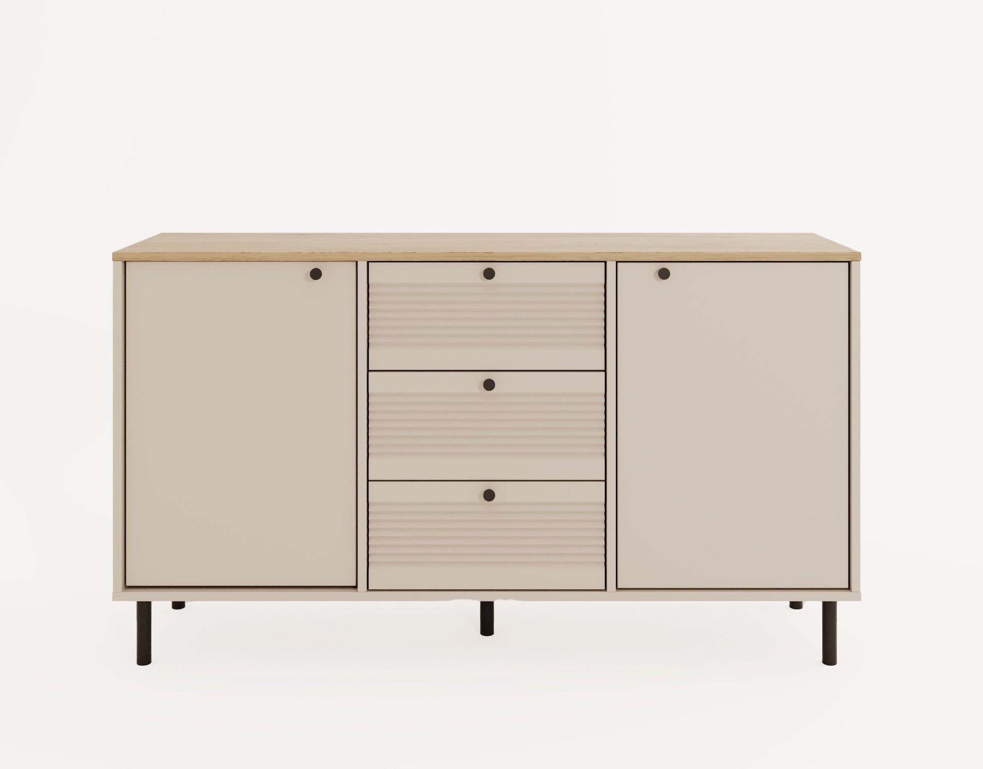 Komoda 150 cm, 2 drzwi, 3 szuflady Kaszmir/Dąb artisan Linea – Elegancja i funkcjonalność z klasycznymi gałkami, idealna do salonu