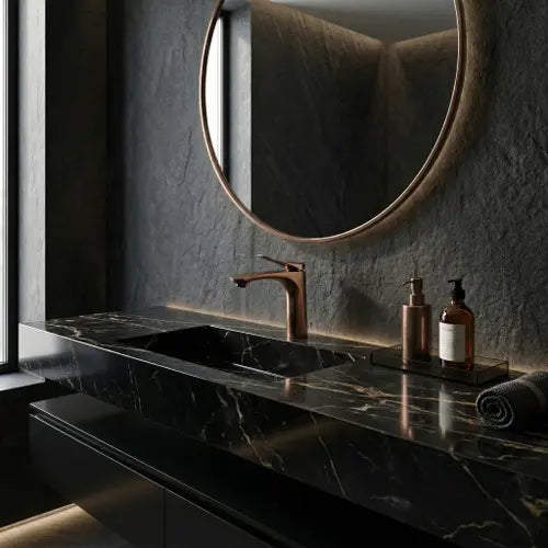 - bateria umywalkowa w wykończeniu miedź szczotkowana