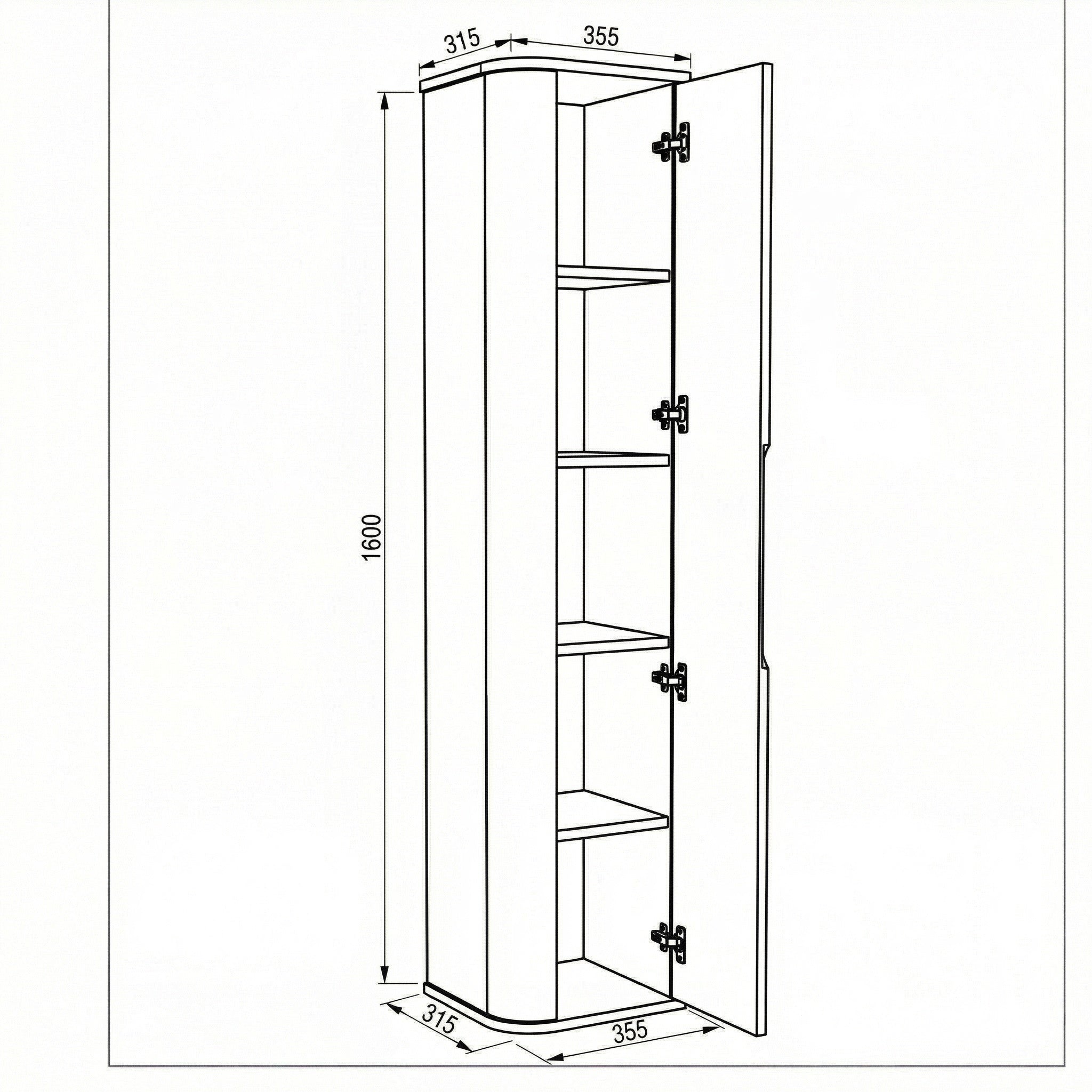 Tym, co odróżnia słupek Luma od standardowych, kanciastych regałów, jest jego asymetryczny kształt. Mebel posiada wyraźnie zaoblony z jednej strony bok korpusu zewnętrznego. Zastosowanie giętej płyty MDF (16 mm) sprawia, że bryła zyskuje opływową linię i wizualną lekkość. Zaokrąglony profil to nie tylko estetyka klasy premium, ale również większy komfort i bezpieczeństwo użytkowania w często wąskich przejściach łazienkowych.