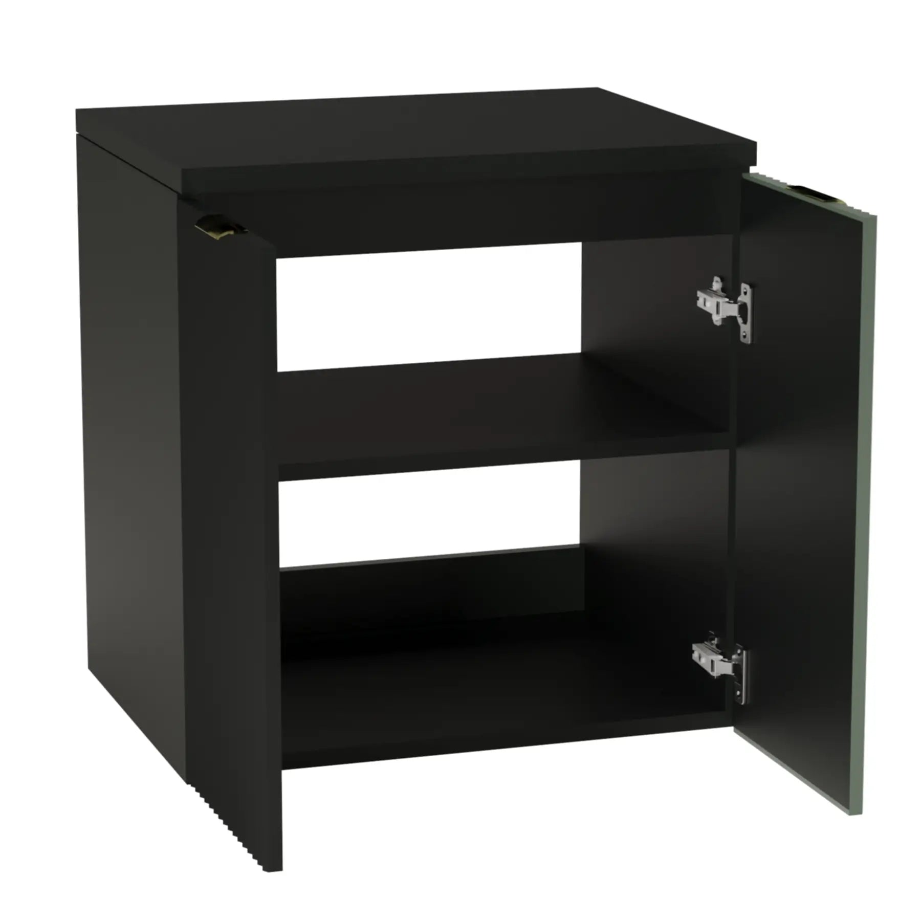 Szafka łazienkowa z wpuszczaną umywalką Czarna 60 cm Willy – ryflowane drzwi