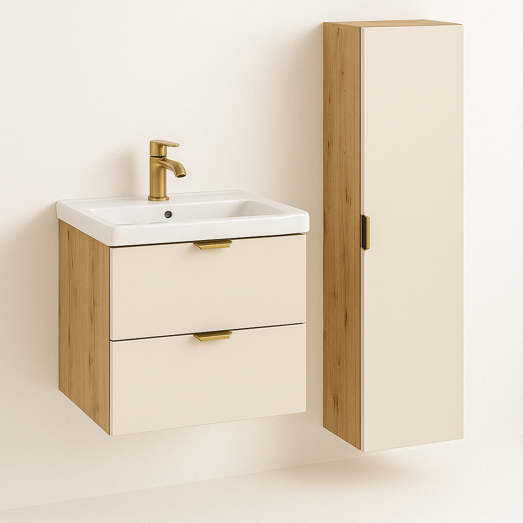 Szafka łazienkowa z Umywalką 60 cm Kaszmir/Dąb Artisan Orio – Elegancja i Funkcjonalność w Każdym Detalu