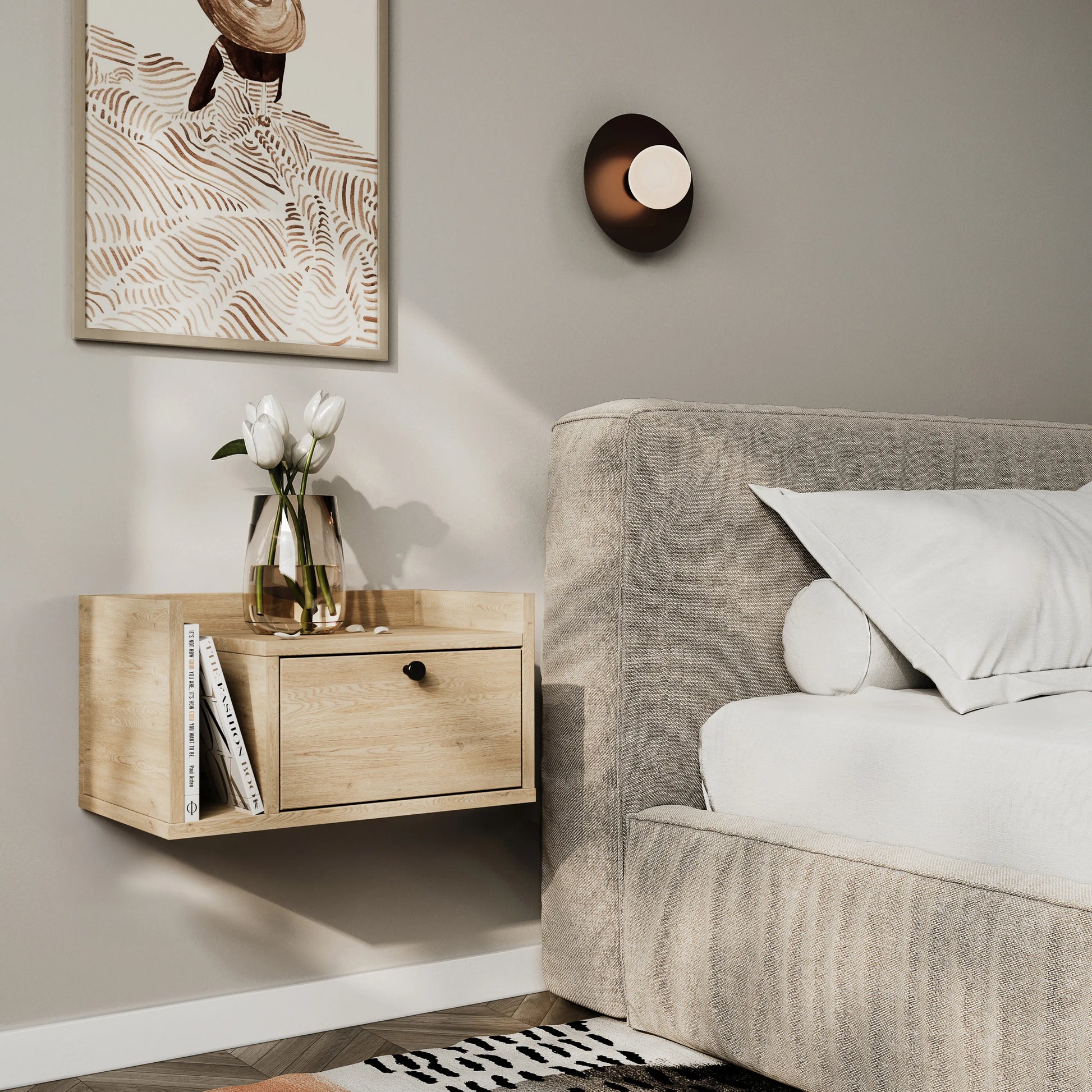 Szafka nocna, wisząca, z szufladą i półką Dąb Cremona Aura – styl i funkcjonalność
