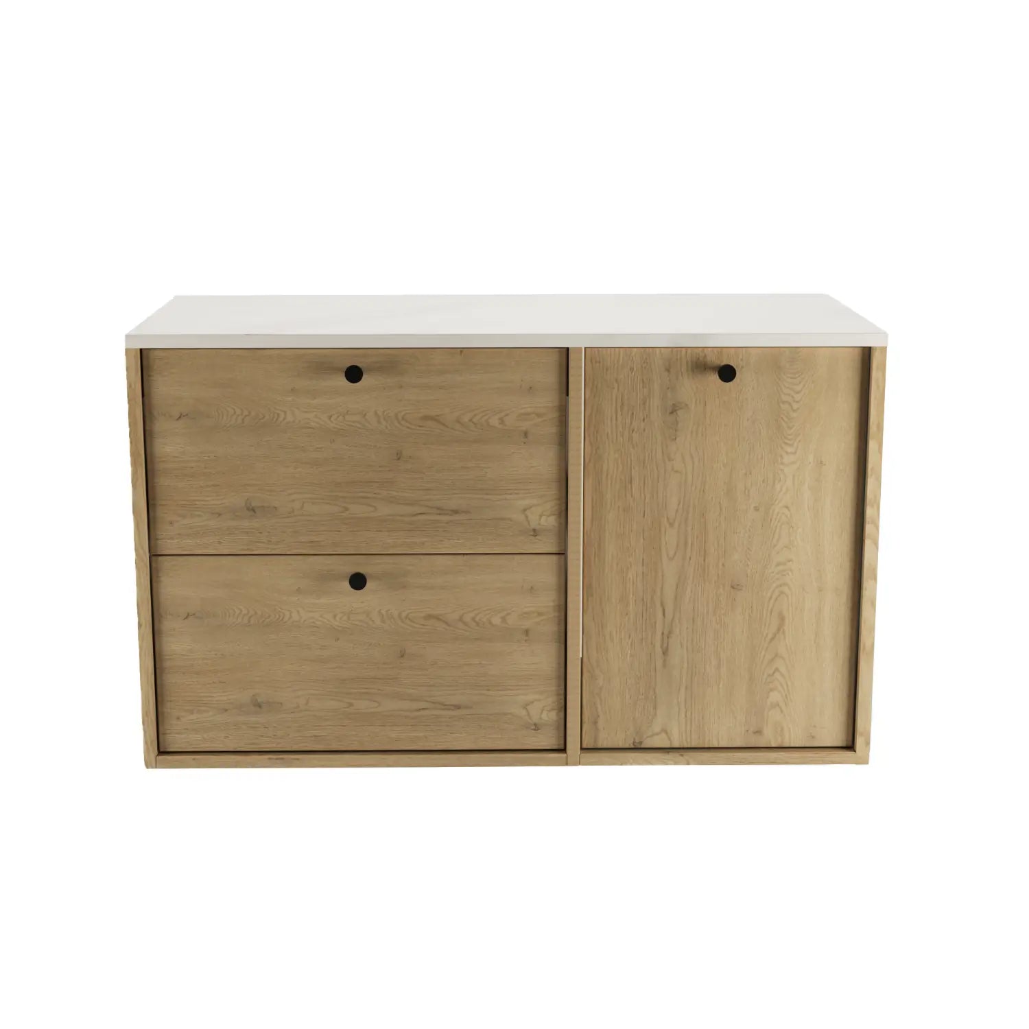 Szafka pod umywalkę 100 cm z koszem na pranie Dąb Cremona / Marmur Bianco – Kolekcja Belino
