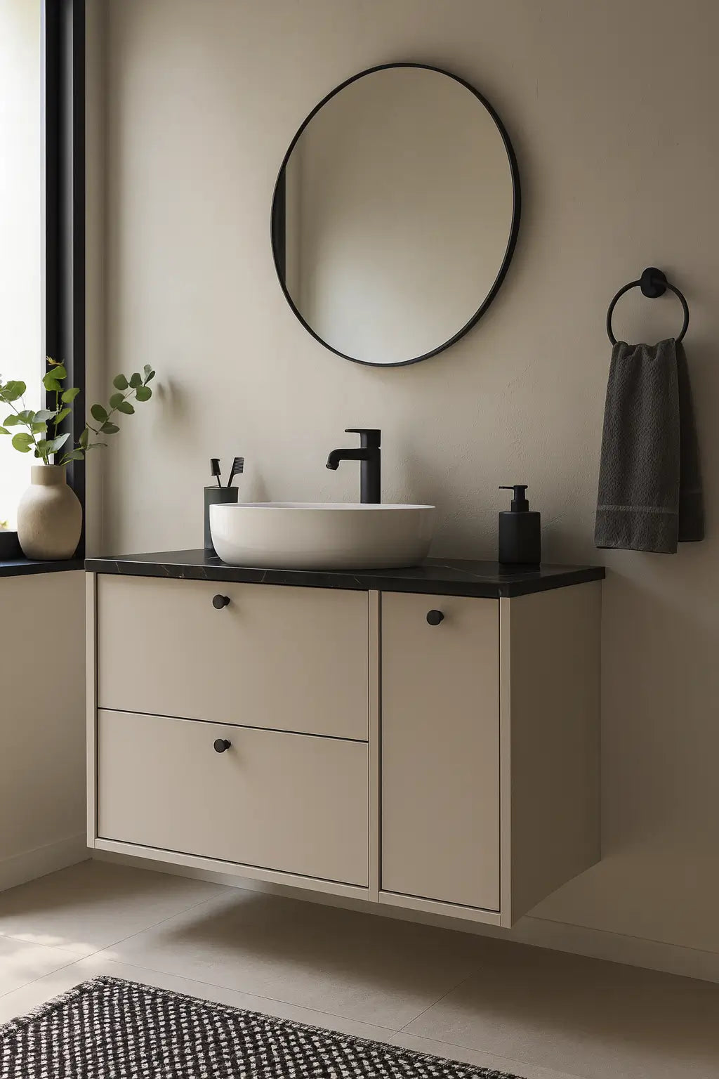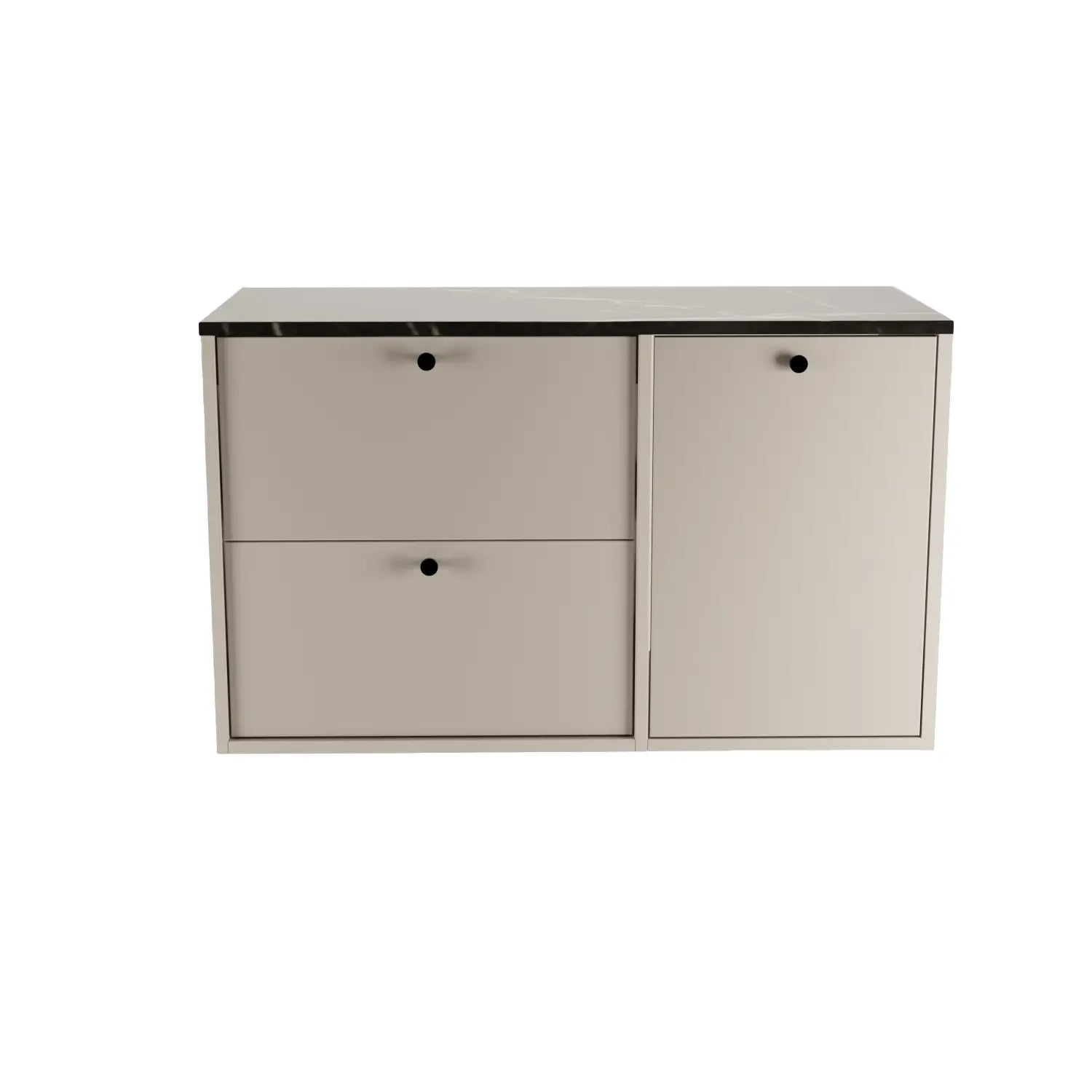 Szafka pod umywalkę Belino 100 cm w zestawieniu Kaszmir z blatem Marmur Czarny Royal to połączenie elegancji i funkcjonalności w nowoczesnym wydaniu. Jasny, stonowany kolor kaszmiru kontrastuje z ciemnym, marmurowym blatem, tworząc wyjątkowy efekt wizualny, który dodaje lazience charakteru i klasy.