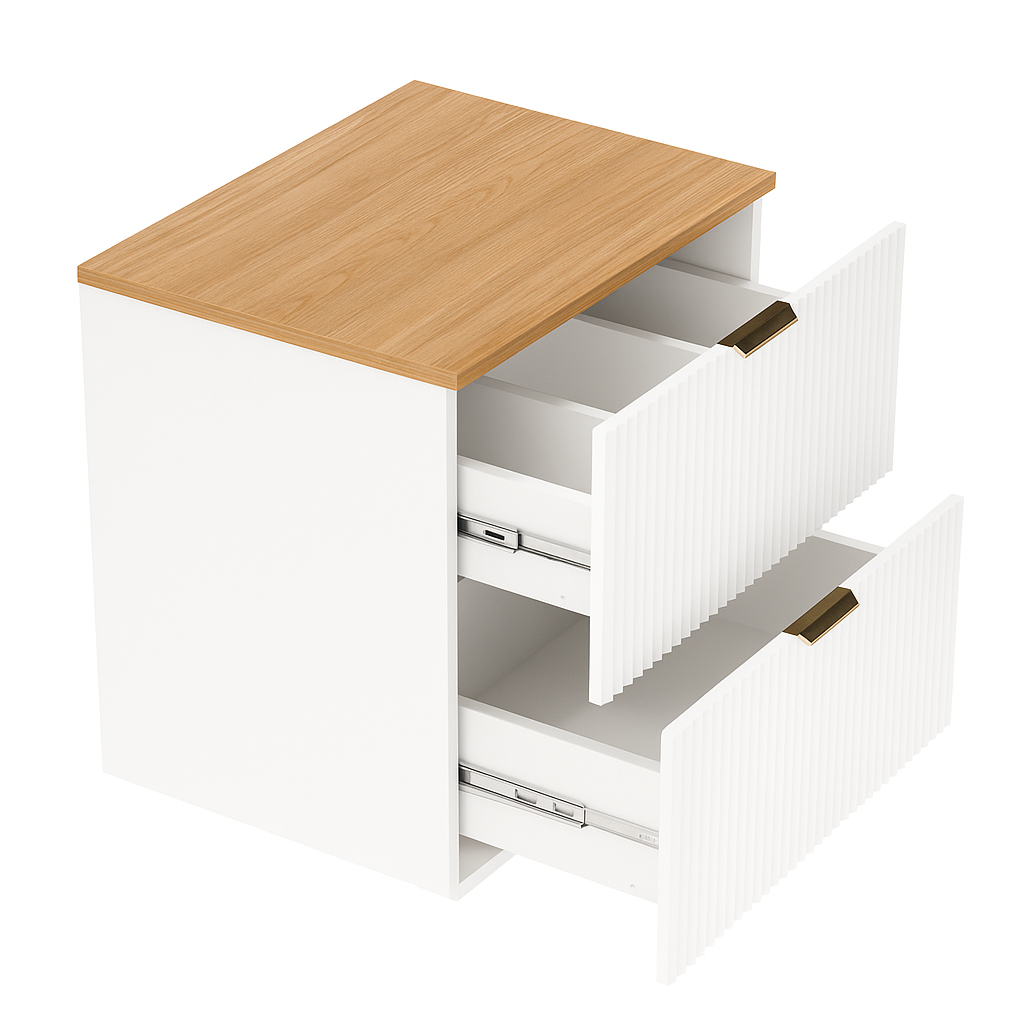 Szafka pod umywalkę 140 cm Biała z orzechowym regałem i ryflowanymi frontami Willy – Elegancja i Funkcjonalność w Twojej Łazience