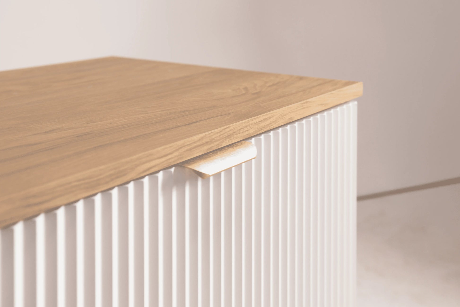 - Ryflowane fronty – modne wykończenie dodające meblowi charakteru.