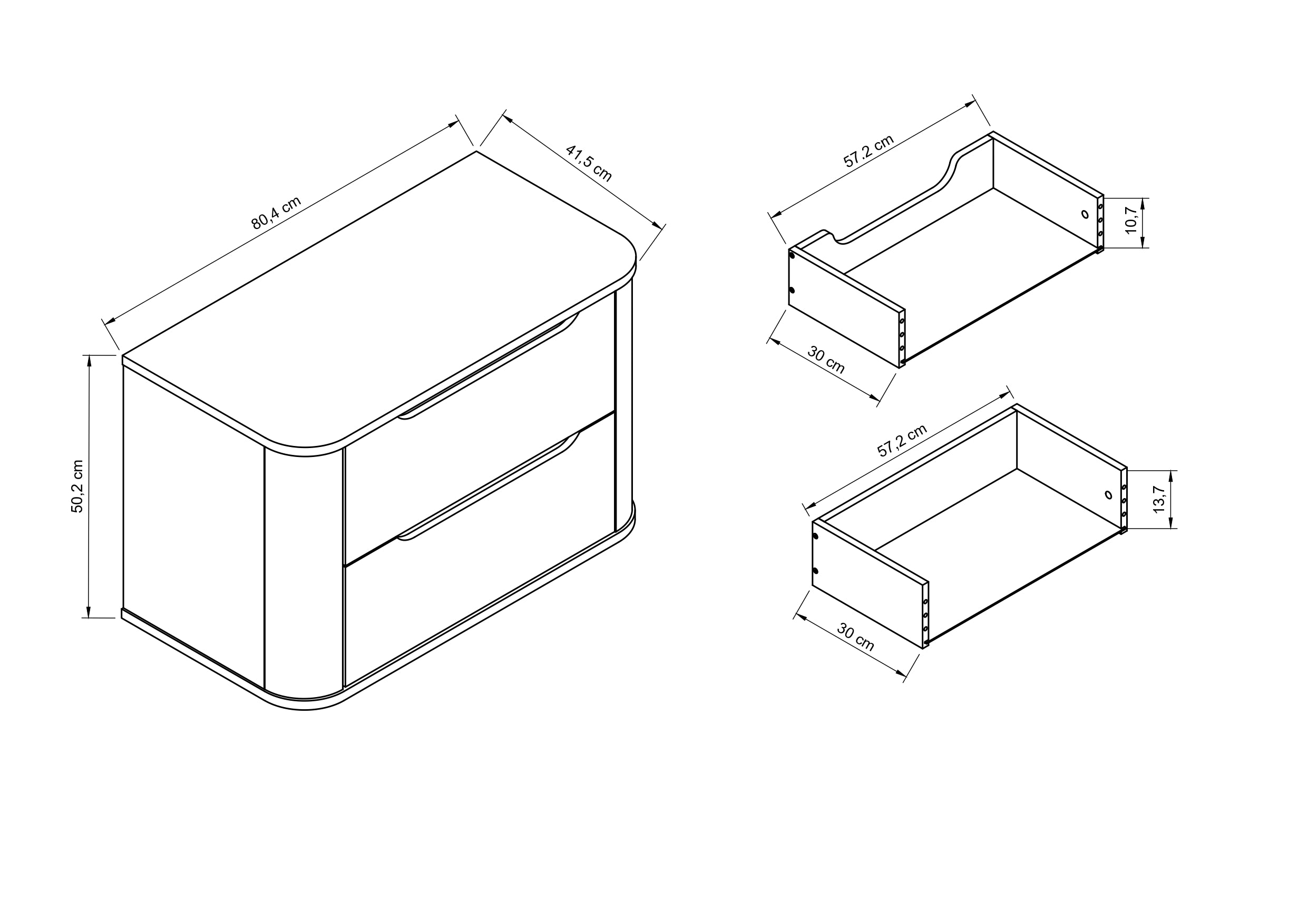 Opływowy korpus: Zaokrąglone boczne krawędzie korpusu zewnętrznego nadają szafce ekskluzywny, monolityczny wygląd.