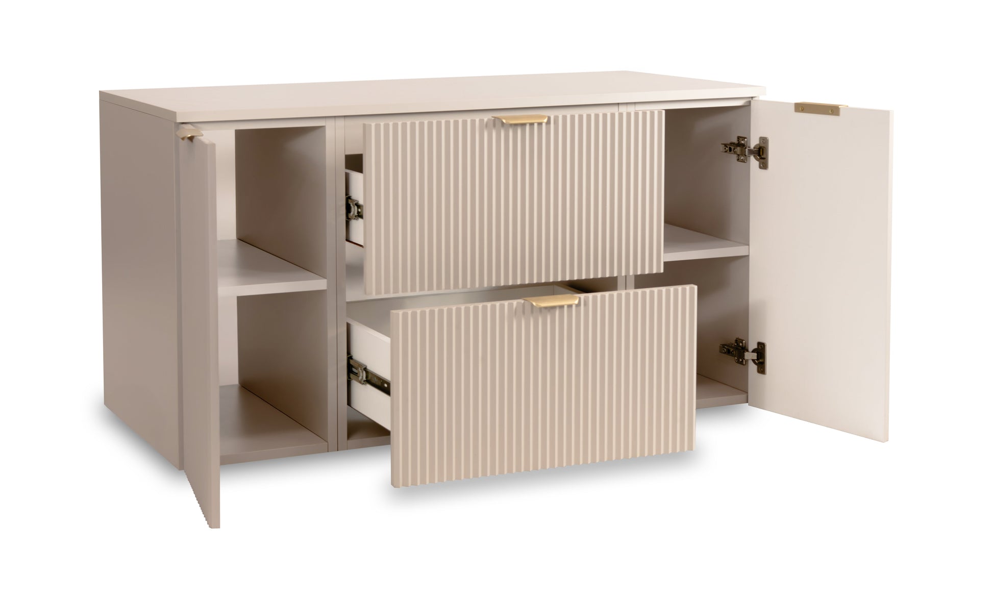 - Ryflowane fronty – detal, który nadaje szafce nowoczesnego charakteru i wyróżnia ją wśród innych mebli.