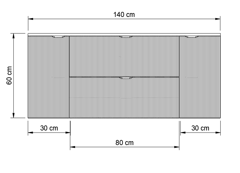 - Szerokość każdej bocznej szafki z drzwiami: 30 cm