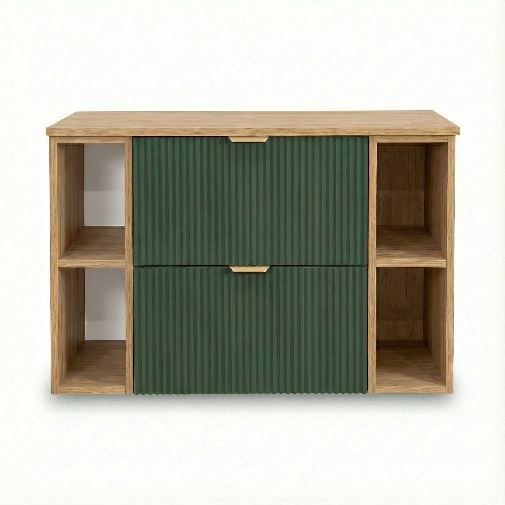 Szafka pod umywalkę z 2 regałami 100 cm Szałwiowy/Orzech Willy – Elegancka Kombinacja Szałwii i Ciepłego Orzecha