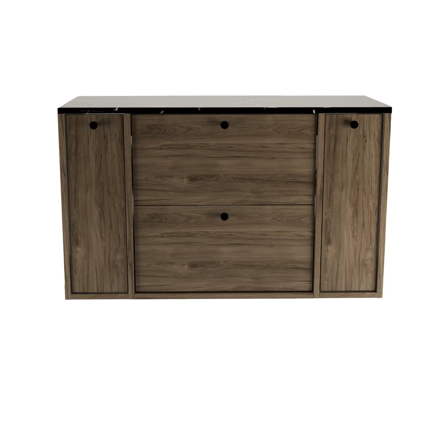 Szafka pod umywalkę z 2 regałami zamkniętymi 100 cm Ciemny Orzech / Marmur Czarny Royal – Kolekcja Belino