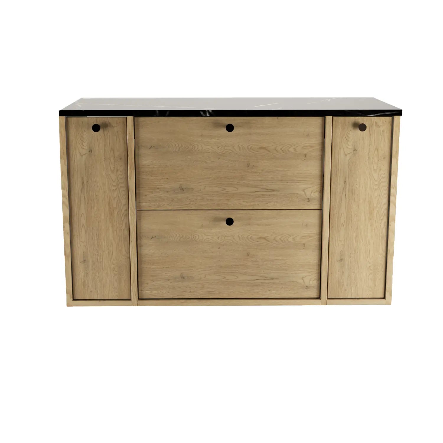 Szafka pod umywalkę z 2 regałami zamkniętymi 100 cm Dąb Cremona / Marmur Czarny Royal – Kolekcja Belino