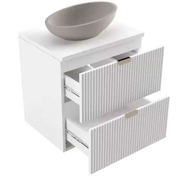 Szafka pod umywalkę nablatową 80 cm Biała z ryflowanymi frontami Willy – Elegancja Alpejskiej Bieli z Przestronnymi Szufladami