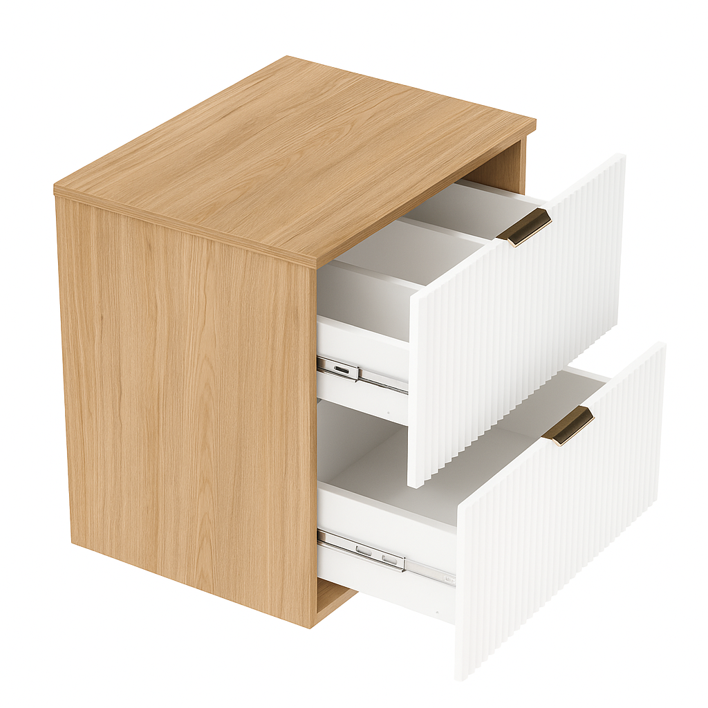 Szafka pod umywalkę 120 cm Biały / Orzech z Ryflowanymi Frontami Willy to połączenie elegancji, funkcjonalności i ponadczasowego designu, który doskonale sprawdzi się w każdej łazience. Piękne kolory, przestronność szuflad oraz wysoka jakość wykonania sprawiają, że szafka jest nie tylko praktyczna, ale także stanowi piękny element dekoracyjny w łazience.