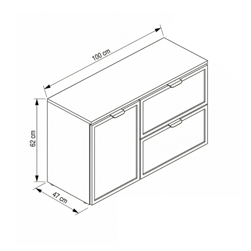 Korpus i blat z płyty wiórowej laminowanej 18 mm zapewniają trwałość, stabilność i odporność na wilgoć. Dzięki wysokiej jakości materiałom szafka zachowuje estetyczny wygląd nawet przy codziennym użytkowaniu.