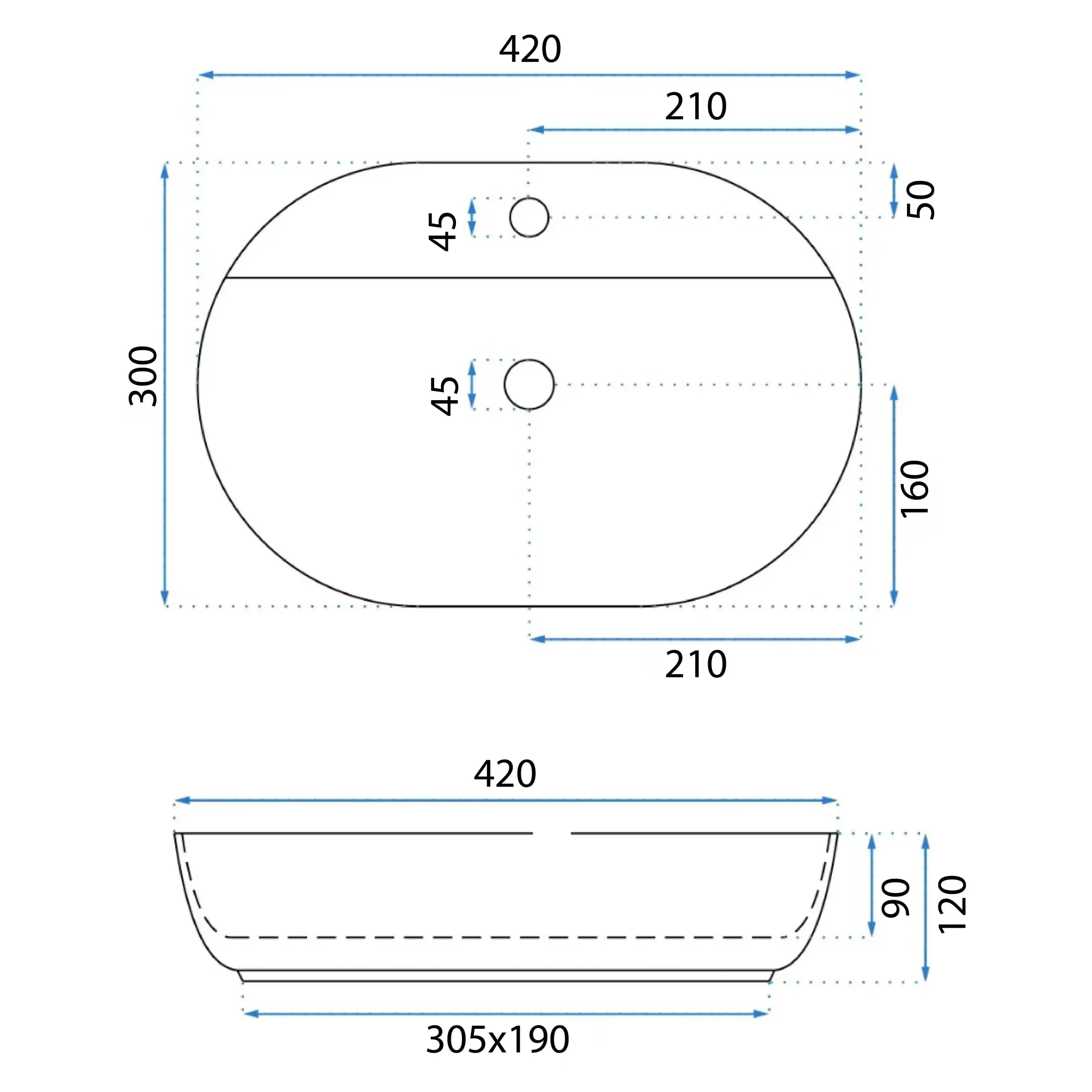 Umywalka Nablatowa 42 cm biała Aura zapewni każdej łazience nowoczesny wygląd i wysoką funkcjonalność. Wykonana jest z wysokiej jakości ceramiki sanitarnej. Posiada owalną misę w kolorze lśniącej bieli o szerokości 420 mm. Umywalka jest w niewielkiej części zabudowana. W tylnej części misy posiada otwór montażowy na baterię.