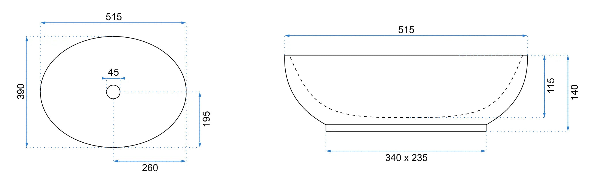 Ważne: w komplecie znajduje się wyłącznie umywalka. Bateria, korek oraz szafka są dostępne osobno.