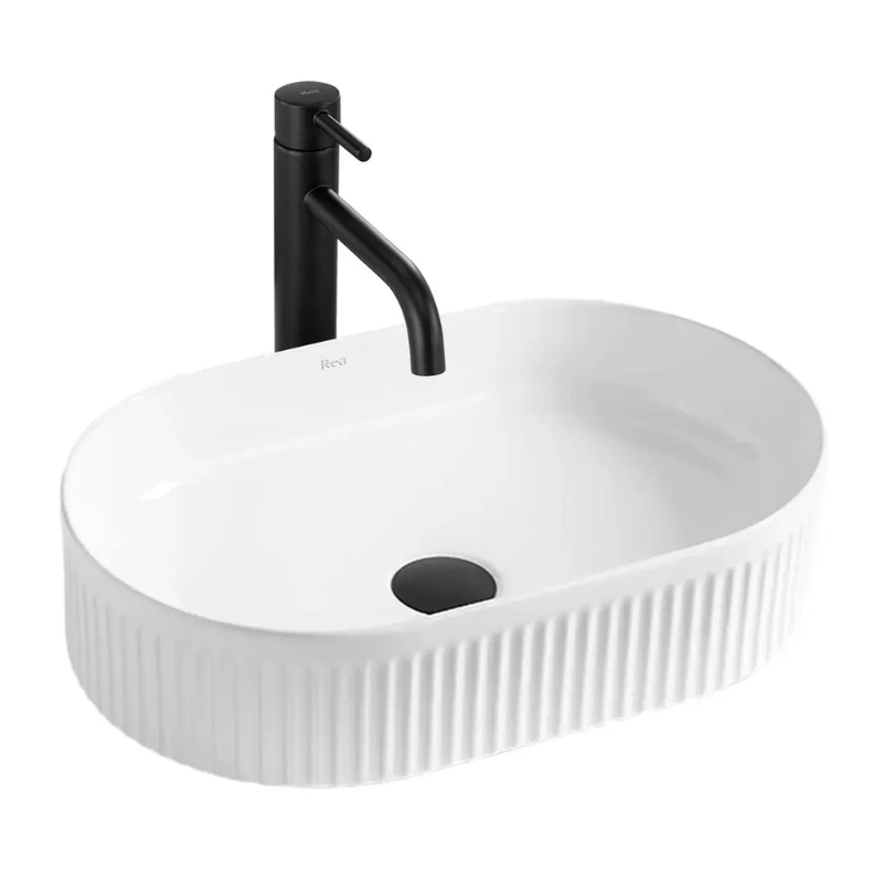 Umywalka nablatowa biała 50 cm Vanda ryflowana